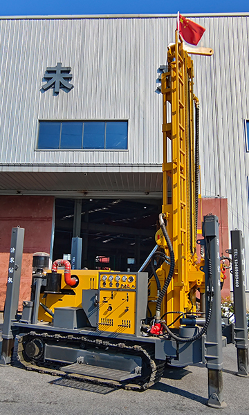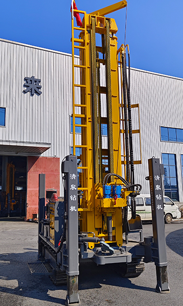 清泉400型潛孔水井鉆機 發(fā)動機功率:玉柴股份六缸92千瓦。 油泵:美國泊姆克。 動力頭馬達: BM6-390。 最大扭矩: 12000 扭米+ 最大提升力: 30噸。 操作閥:三立。 整機機重: 8.8噸。 尺寸:長5.8米(底長4.15米),寬1.9米,高2.5米。 鉆孔直徑: 105-400 毫米。 鉆桿直徑:中76/φ89(3米)。 一次性推進長度: 6600 毫米。